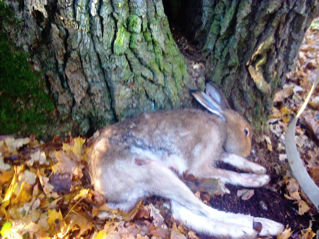 И вот при очередной разборке следов из расщелины дерева на меня выскакивает заяц.