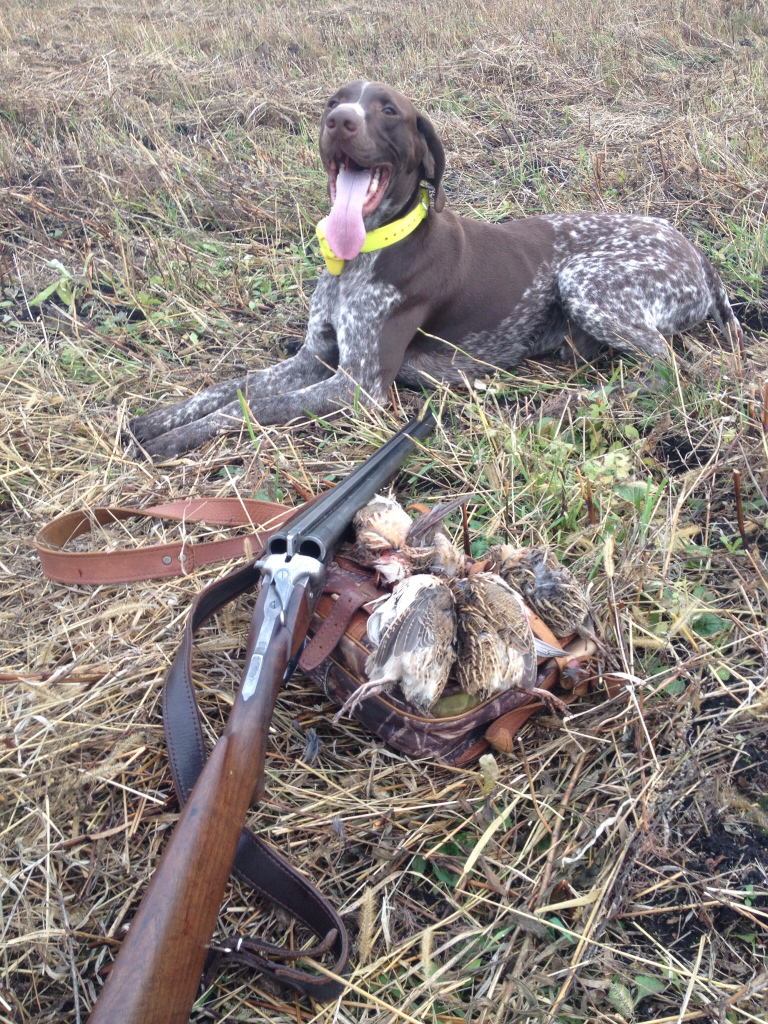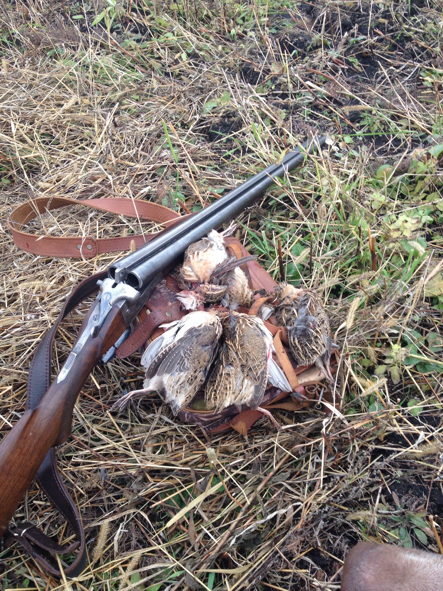 Второго перепела бью чисто, 3, тоже, 4го цепляю вторым выстрелом- чоком примерно на 35-40 метров, он уже садился, сложив крылья как коростель... Я, перезарядившись, посылаю Эда, он делает стойку...