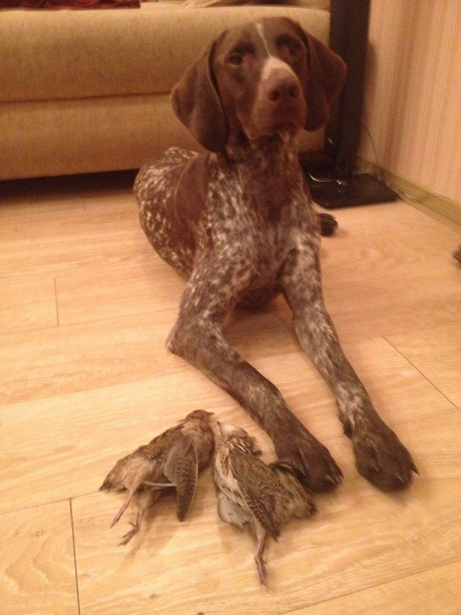 Так что в итоге за 2 часа охоты вальдшнепа не видели, но, по просьбе Ромы-барнеса, забрали с собой пару перепелов