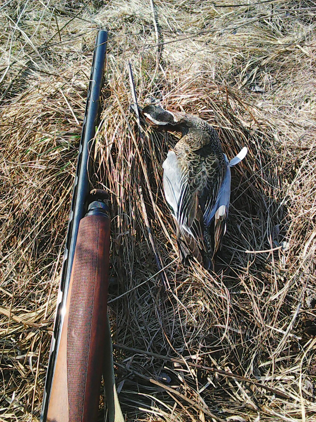 Поохотился примерно до 13-00, взял чирка-трескунка (см фото) Были налеты кряковых, к чучелам и рядом не садились. В основном кря каши все парами, даже пролетавшие стаи кря кашей 50на50. В стайках чирков-трескунков больше селезней. Движение утки в небе было активное, что давало надежды и радовало.