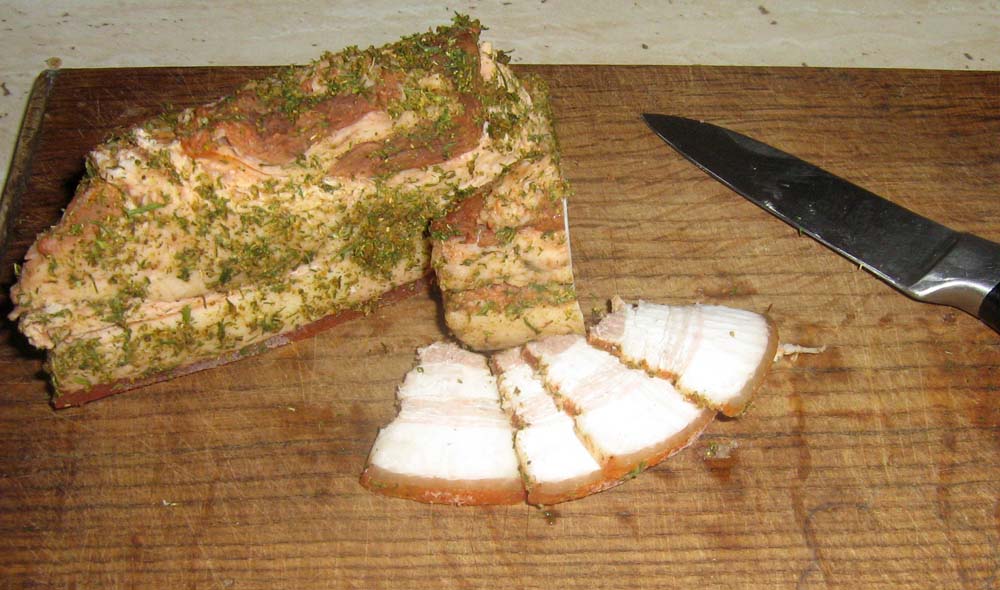 Надыбал я надысь свежего сала, примерно с килограмм. Хорошее такое сало, с мясом.